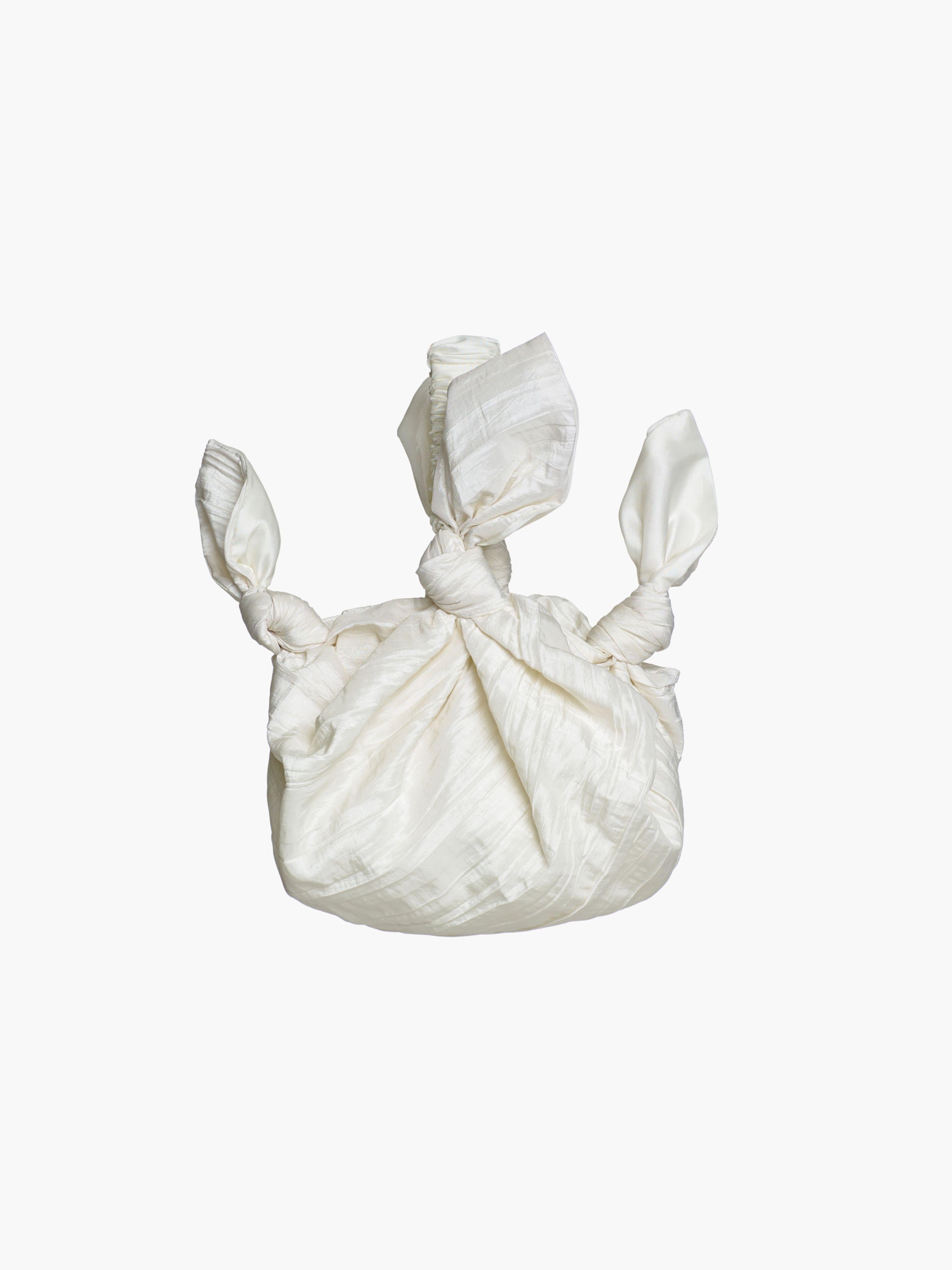 Baby furoshiki bridal handbag in ivory crinkle taffeta