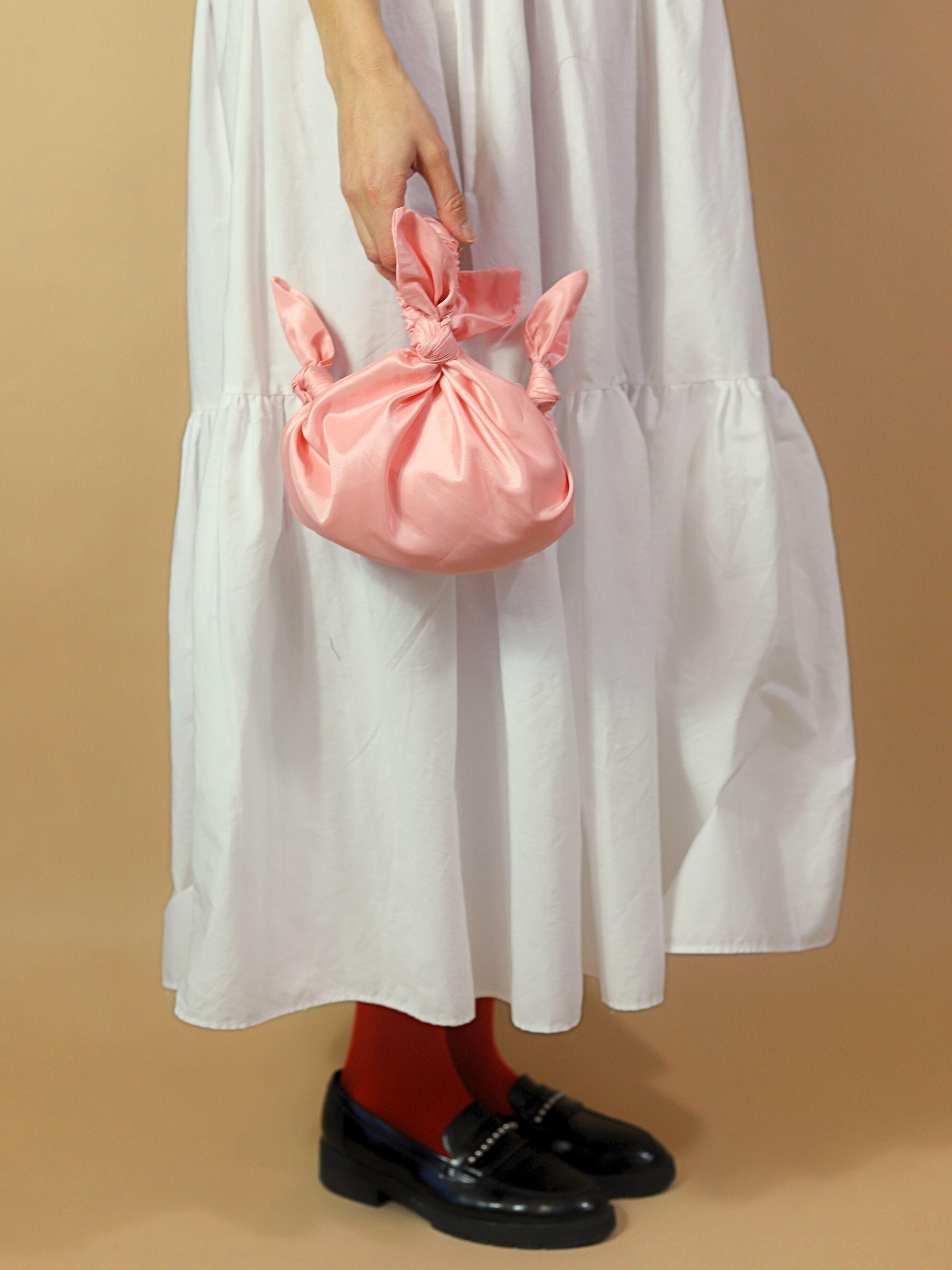 Baby furoshiki handbag in soft pink taffeta
